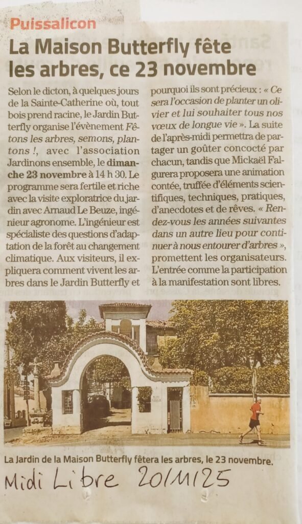 Dimanche 23 novembre, une bien jolie façon d’honorer les arbres dans le jardin Butterfly, sous l’initiative et la coopération de l’association Jardinons Ensemble.