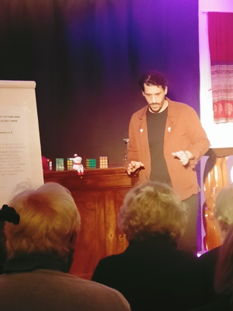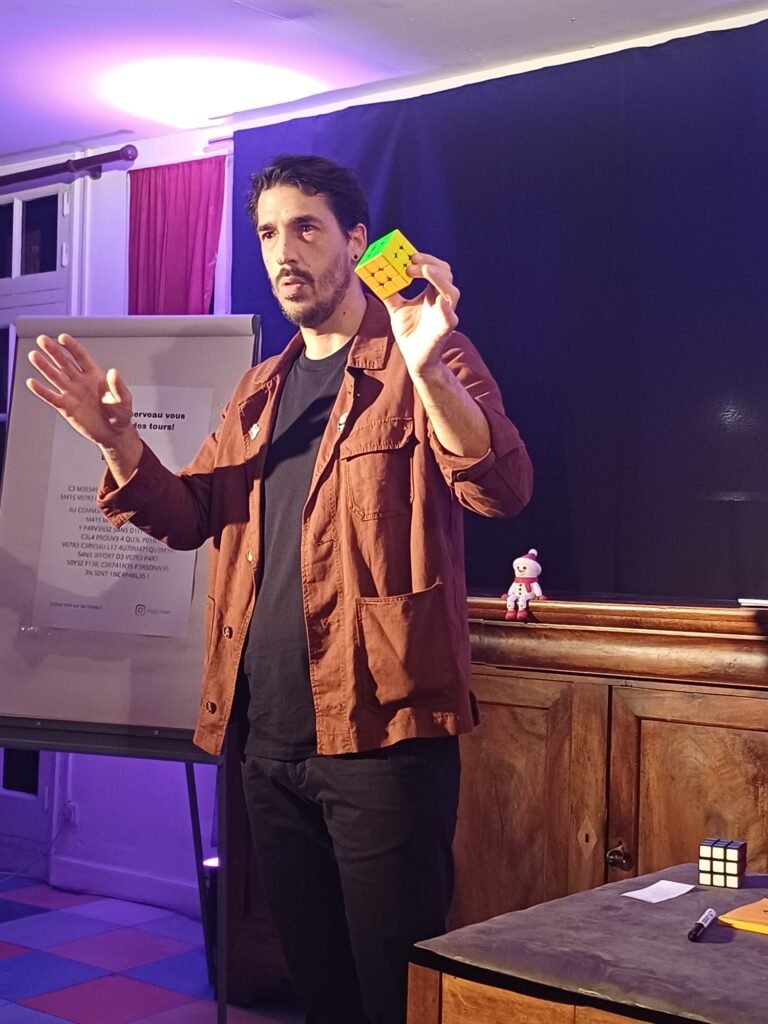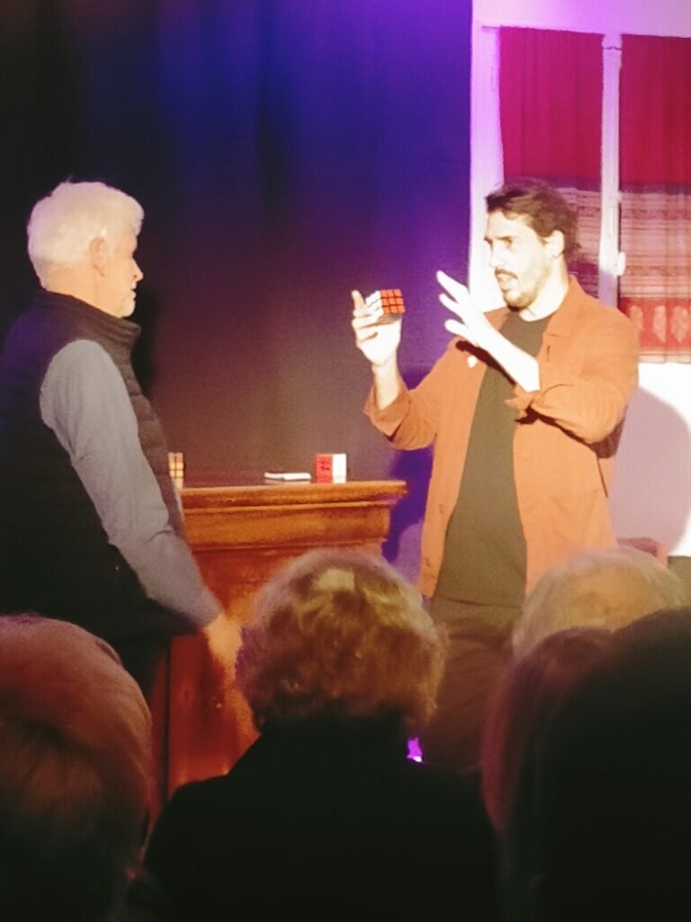 Humour, stupéfaction devant des tours insolites présentés par ce magicien, mentaliste et qui manie le rubik’sKub comme personne.