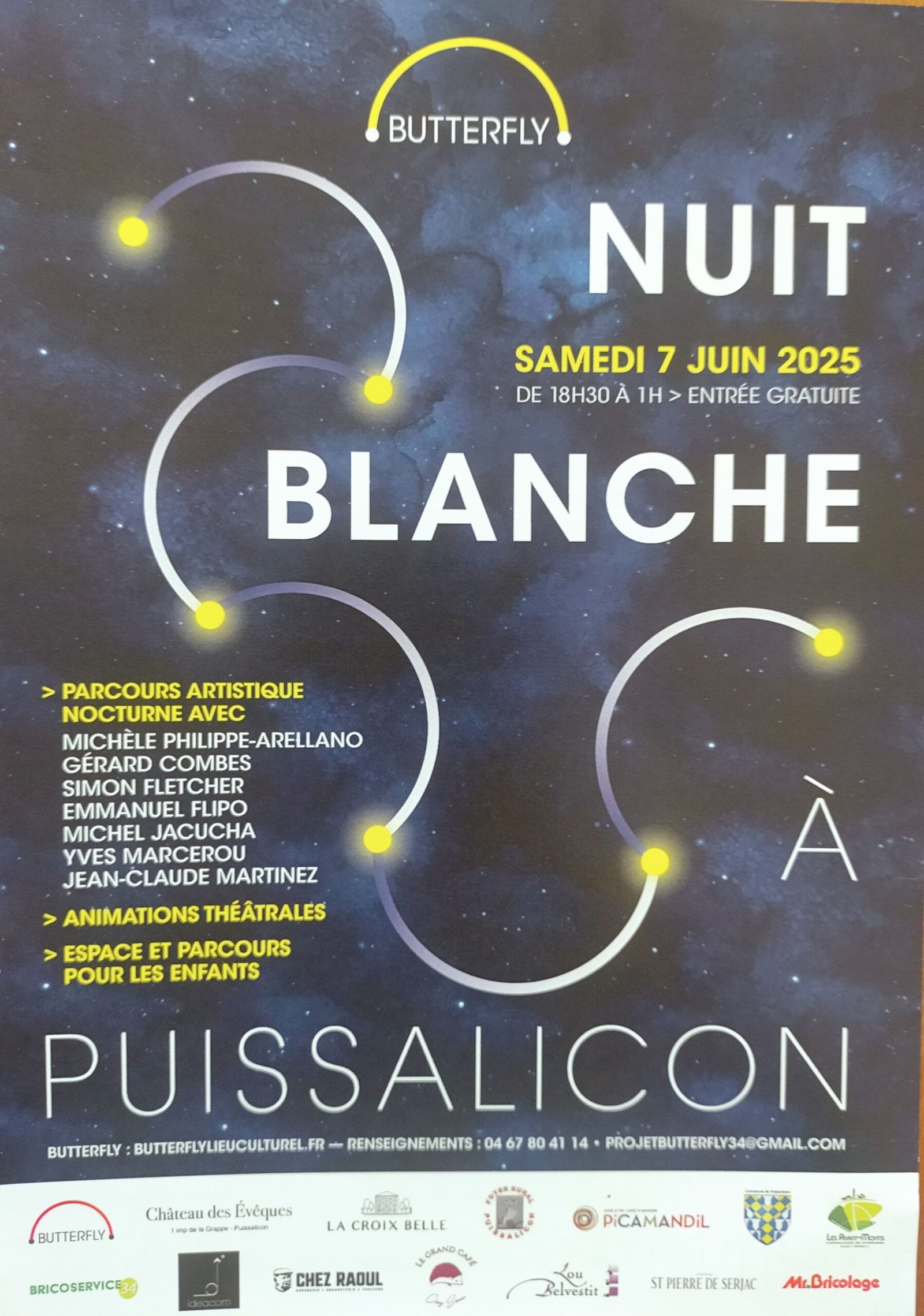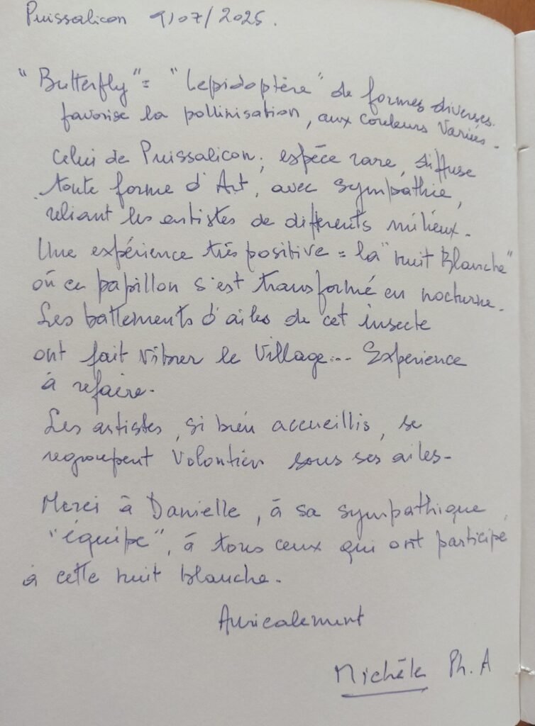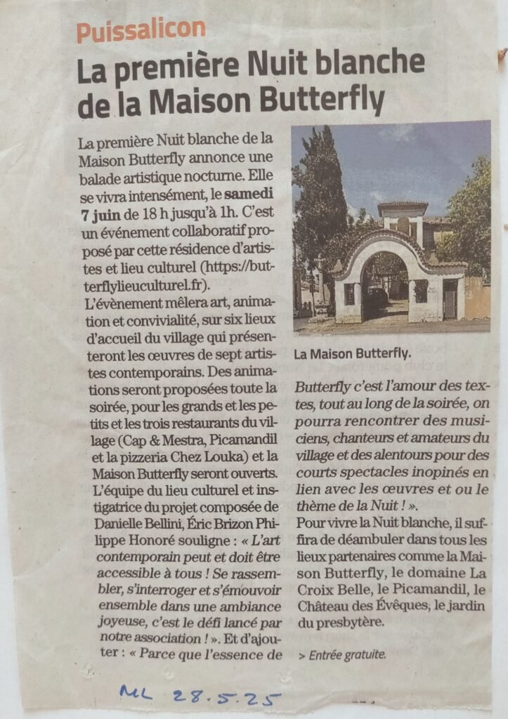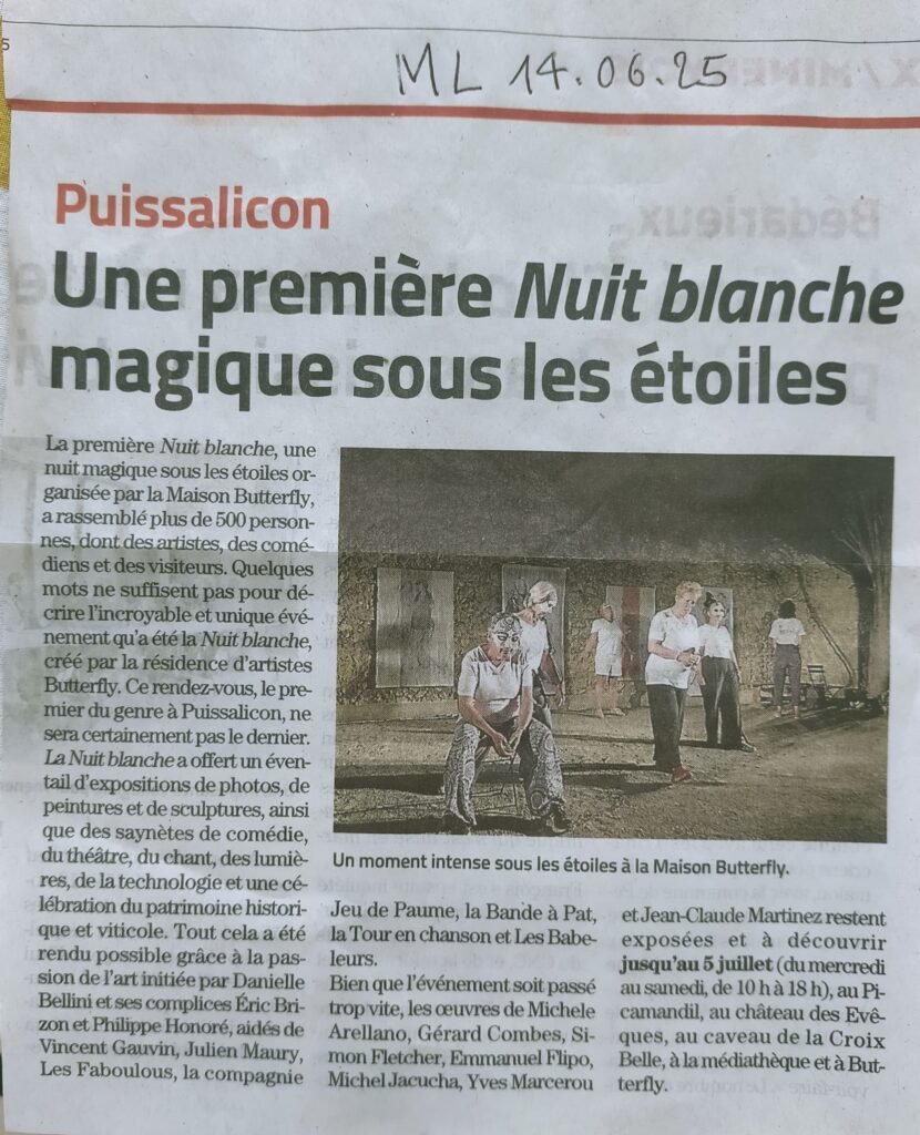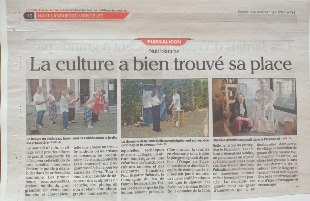 Pendant un mois, dans plusieurs lieux emblématiques et magiques du village de Puissalicon, les œuvres de 7 artistes ont été exposées. Un village tout entier tourné vers la surprise, le croisement des arts, le métissage des énergies, la joie du partage.